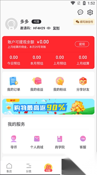 5、现在就能在“我的”中看到自己的邀请码了。