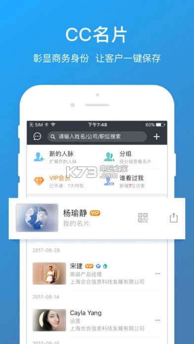 超2亿商务精英都在使用名片全能王:不仅能扫描管理名片、拓展商务人脉,还可查询7500万家企业的工商信用信息。