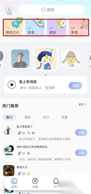 6、只需一键,就能轻松设置各类提示音,这里拥有海量流行铃声,助你彻底告别单调的系统铃声。