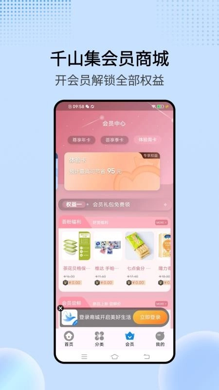 千山集 app 官方版,是一款聚焦会员商城购物的应用软件。软件内汇聚海量商品好物,全品类覆盖,方便用户快速选购下单,轻松入手所需商品。多样化的商品分类,助您轻松筛选,一键严选好物,通过分类查找实时下单,实现一站式购物体验。而且,会员商城里的商品皆是优质之选,严选品质,让您以超值性价比购买,快捷选购下单。另外,千山集软件支持用户实时解锁多项会员权益,开通会员即可领取开卡礼,畅享多项会员权益。有需要的用户,快来本站下载使用吧!