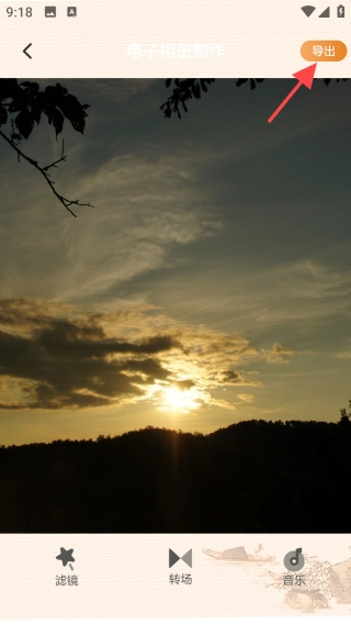 4、添加滤镜、转场、音乐,预览后导出即可。
