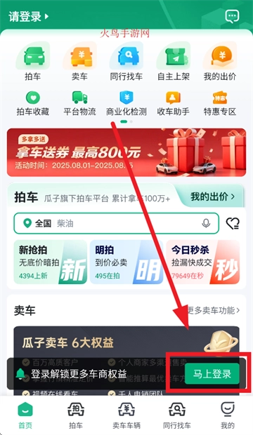 进入首页后点击马上登录