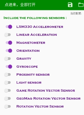 3、能够依据自身需求,在手机上对传感器列表进行自定义设置,达成数据的流式传输。