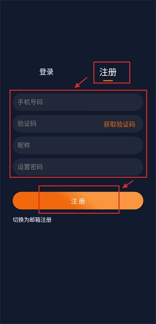 4、自由选择手机号注册或者邮箱注册。