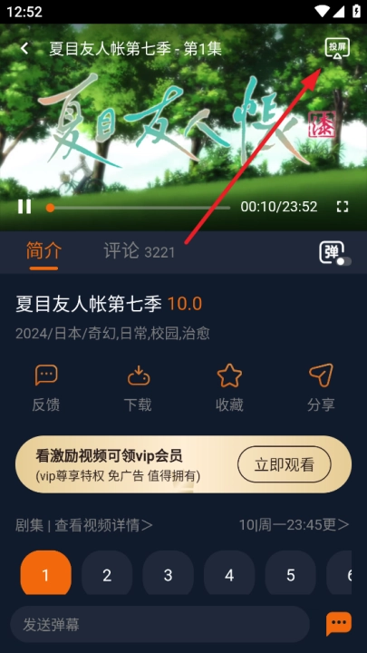 5. 若想要下载剧集,找到中间位置的“看激励视频可领vip会员”,点击“立即观看”。