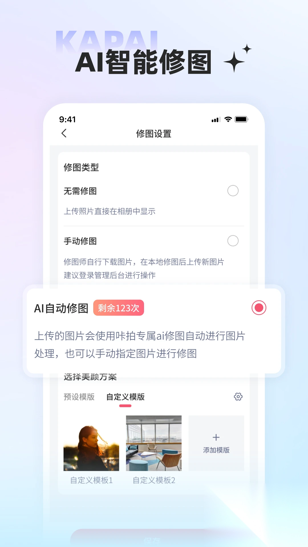 智能修图:利用人工智能技术,自动修复照片,提高作品质量。