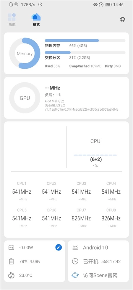 Scene是一款面向安卓发烧友的玩机工具,集性能调节、性能检测、应用管理等功能于一体,界面简洁易用,丰富可视化图形设计。