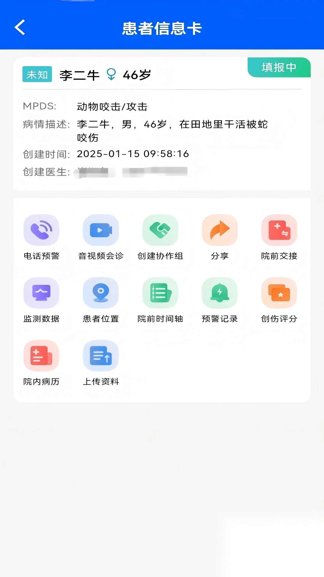3、进入创伤中心救治群,就能查看患者信息,并能一键进行电话预警;