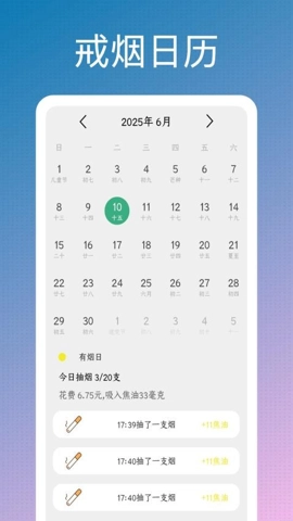 1. 模拟抽烟App设有详尽的戒烟日历,借助该日历,用户能够清楚地知晓自身戒烟的进展情况。