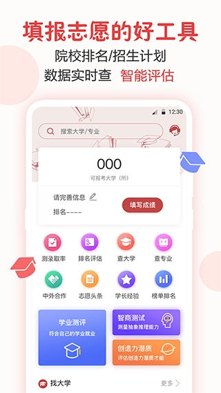 1、院校智能填报:1秒钟告诉你,你能上的学校有哪些,并进行智能推荐;