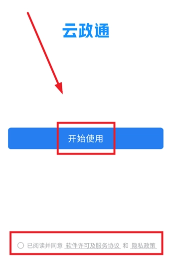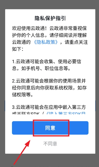 在本站下载安装并打开云政通app,先同意隐私保护指引;