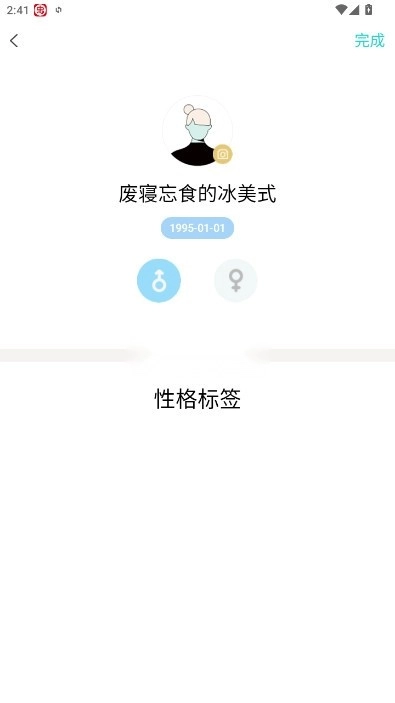 1、进入到软件中选择自己的出生日期的性别