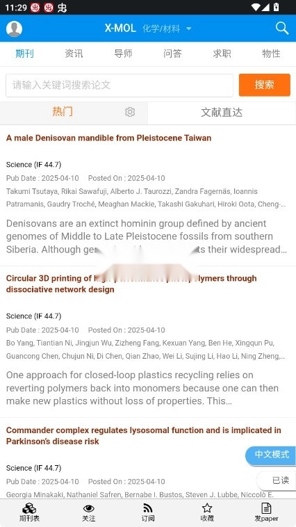 平台整合了包含Nature、Science等在内的数十种高水准期刊的最新论文资讯,并且每日对图文内容进行更新。