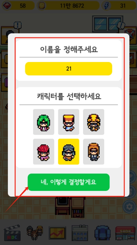 2、输入名字,选个角色头像,点绿色按钮确认。