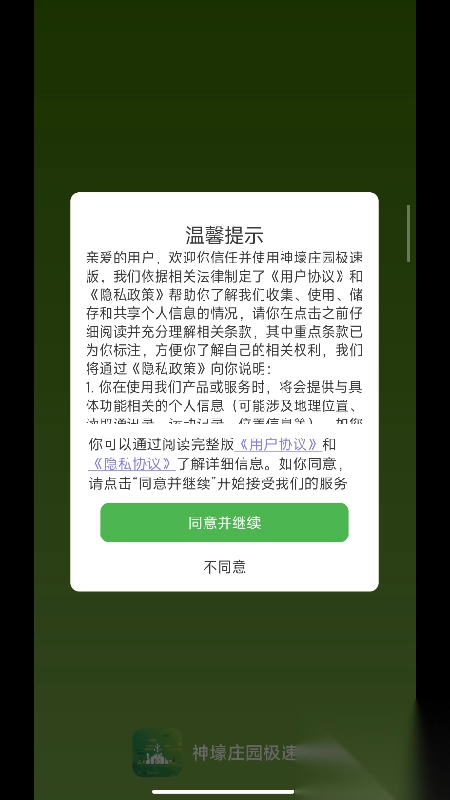 2、需要点击同意温馨提示,进入平台就可以查看庄园数据。