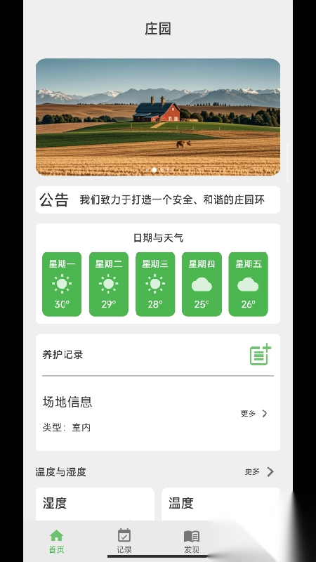 1. 融合养护、温湿度、农田及农作物等记录功能,在不切换工具的情况下就能完成庄园各类信息的记录。