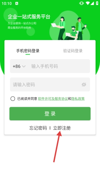 2、在企业服务平台登录页,若需注册,点击【立即注册】跳转注册界面。