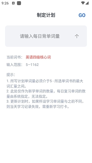3、用户还能够在要背单词中制定一个要背单词的数量。