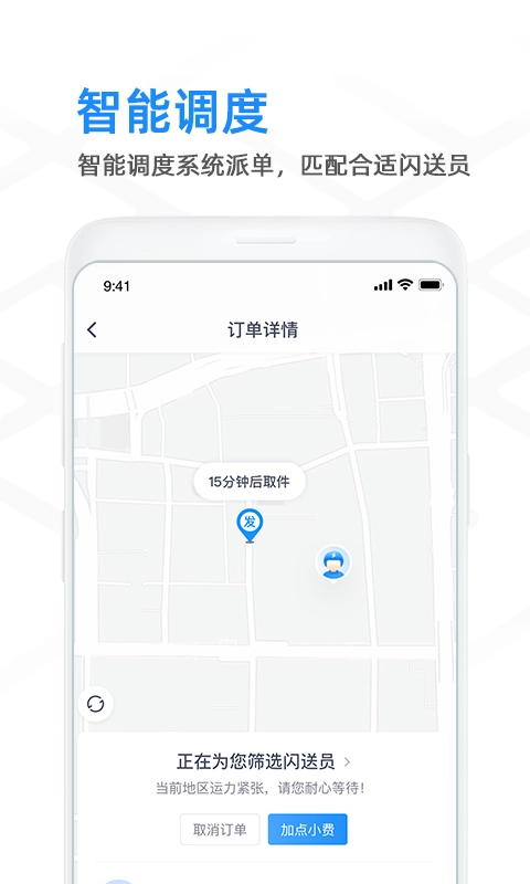 1、闪送商家版APP官网版的下载安装平台,既能用于发布订单,又能实时查看订单详细情况。