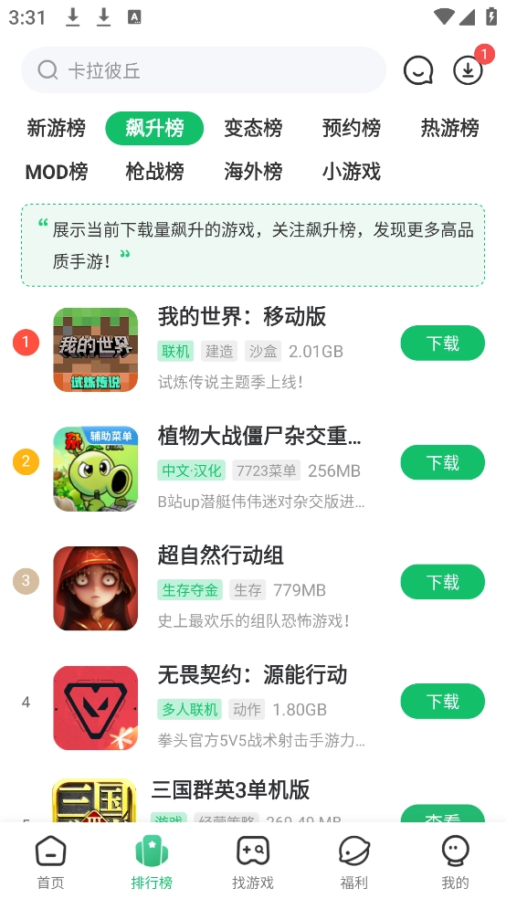 2、热门游戏