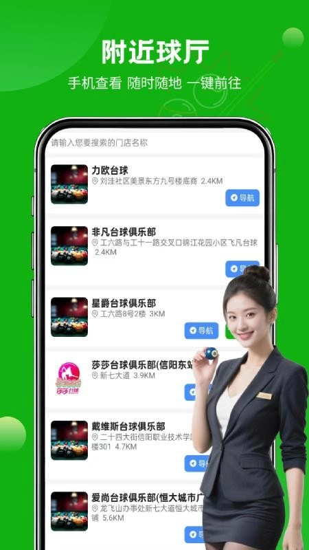借助软件,用户就能获取附近台球厅的信息,并及时得到导航路线。