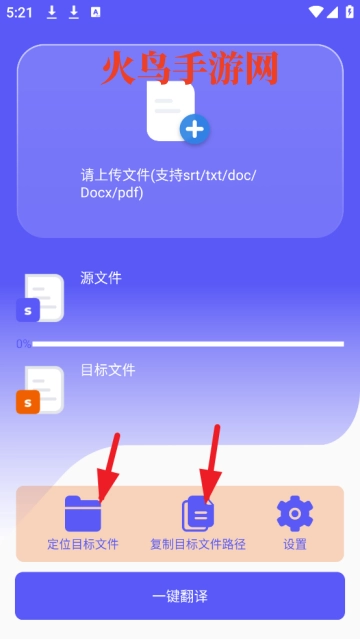 1. 上传需翻译的文件,选定目标语言,点击翻译按钮就能完成操作。