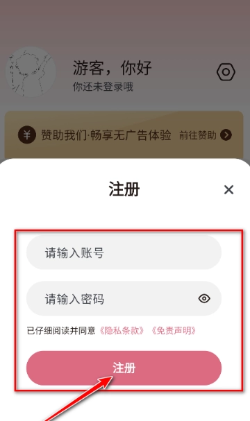4、填入账号与密码,点击“注册”便完成操作。