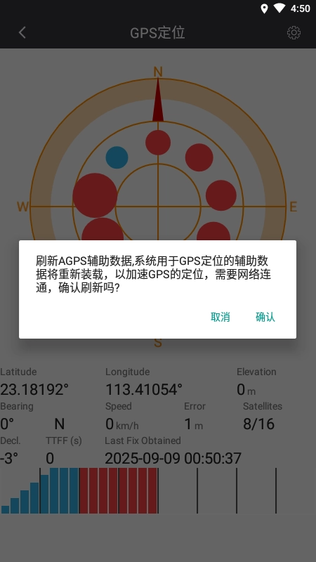 3、接着点击右上角的【设置】,随后点击【确认】,如此手机便能更新GPS卫星数据,加速定位进程。