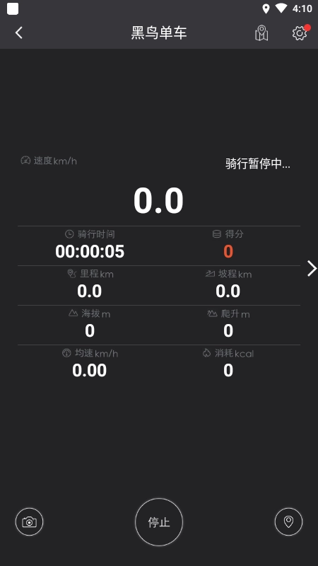 2. 进入骑行界面,点击【停止】按钮。