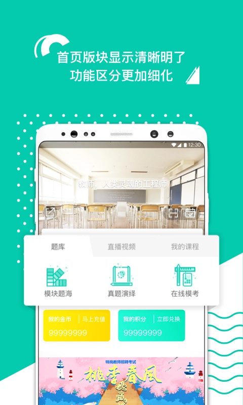 2. 直播体验课全天开启,每月10日直播开放日,免费讲解教师考试干货。