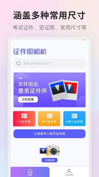 1. 智能搜索尺寸功能:只需输入关键字,即可迅速定位到所需的证件照规格。其涵盖一寸照、二寸照,以及各类考试报名照、出国签证照等丰富多样的尺寸,全方位满足您的多样化需求。