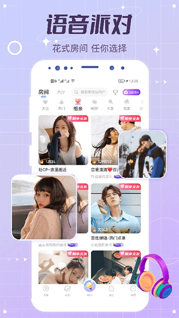 1、充满趣味的聊天房间,涵盖了K歌大比拼、虚拟相亲、才艺展示等多种多样的房间类型。