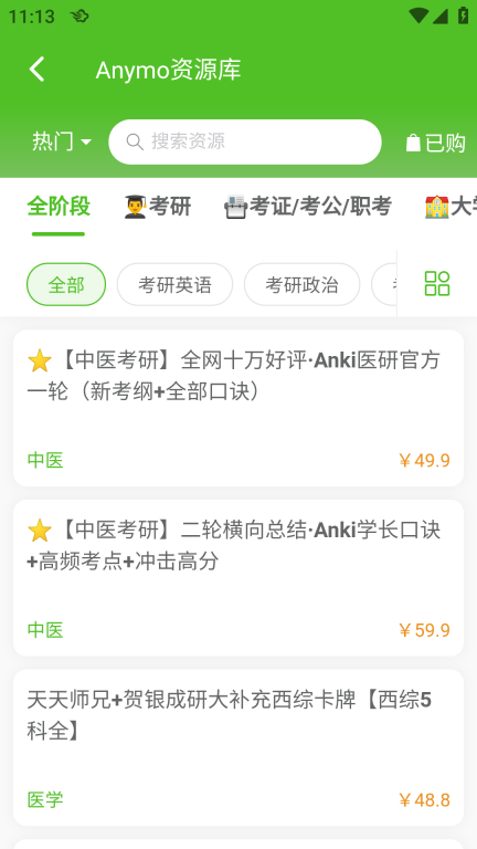 Anymo是一款在手机端使用的便捷且好用的学习软件,十分值得推荐。该软件具备强大的资源库,无论是考研、考公,还是各类职业考试,它都是极为不错的选择。软件内学科内容丰富,可供选择学习。其详细分类涵盖了各个方面。在这里,你能够轻松地在资料中做笔记,还能便捷地导入自己的文件,实现电子化后,学习会变得更加轻松!