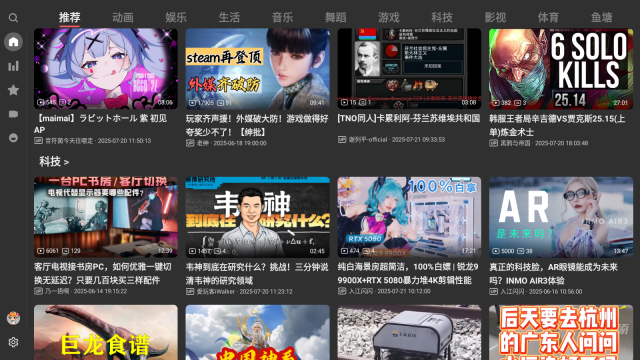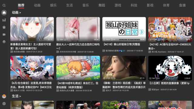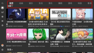 1. 开启ACAC,进入应用程序后,在首页顶端能够看到分类板块,其中涵盖推荐、动画、娱乐、生活等。