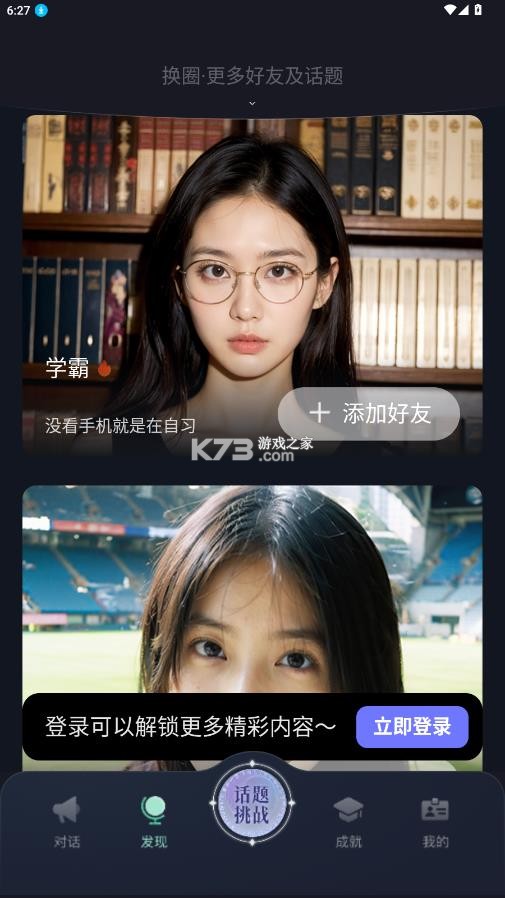 与性格各异的虚拟角色展开对话,沉浸式感受真实社交体验。每个角色皆拥有独一无二的背景与故事。投身于精彩纷呈的虚拟场景故事之中,无论是奇幻冒险,还是都市生活,诸多剧情等待你去探索。你还能自由设定话题,与虚拟角色进行个性化交流,激发出无限的创意与互动可能性。
