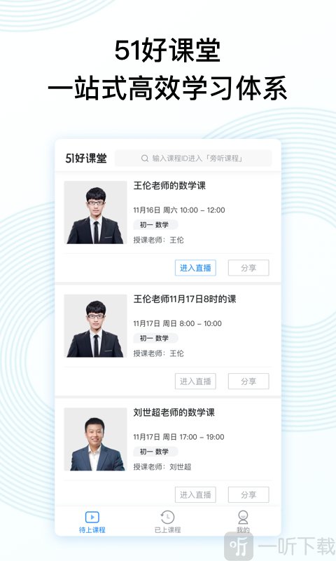51好课堂是一款专为学生补习功课的线上平台。在这个平台上,学生能够找到自己所在年级的学习资料,涵盖从小学到高中的全部内容。用户还可依据自身年级,在这里挑选经验丰富的老师为自己辅导。这些老师经验十足,能够迅速帮助学生提高成绩。