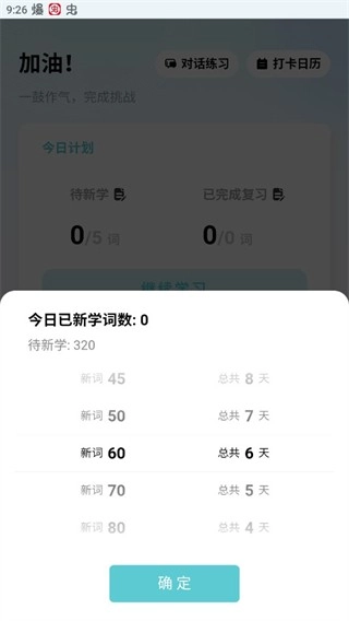 3、确定好自己想要学习的词汇后,返回首页,便能看到今日计划已发生变化。