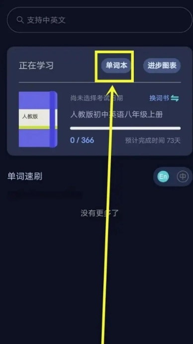 2. 在计划页面内,点击【单词本】选项,从而进入词汇管理页面。