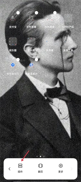 1. 在手机桌面的空白区域长按,随后点击“添加插件”或者“部件”。