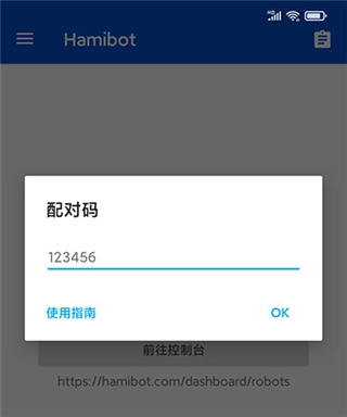 3、点击“添加机器人”,记录下配对码,后续会用到。