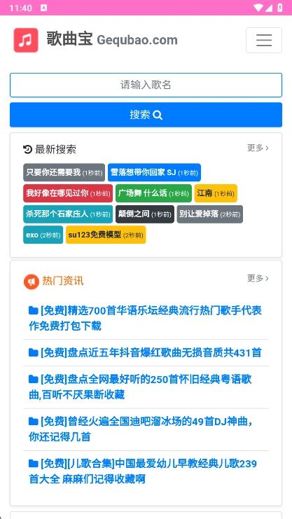 1、在本站下载安装歌曲宝,安装完成后打开,进入首页,便能浏览到丰富全面的音乐动态。