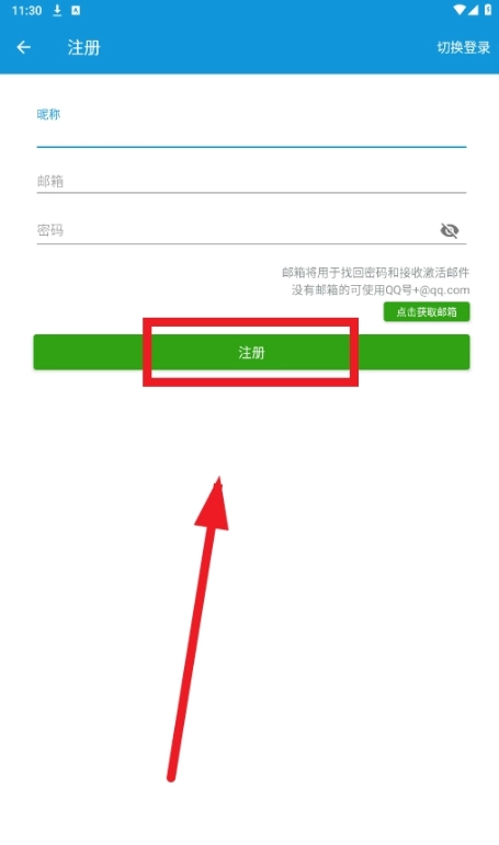 4、依次输入昵称、邮箱及密码,随后点击“注册”按钮。