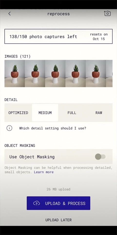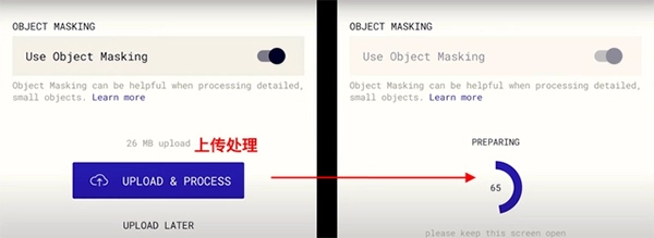 4、此时,我们点击那个紫色的【UPLOAD & PROCESS】按钮,该按钮的意思是上传并处理,点击后它便会对我们刚刚拍摄的照片进行加工处理。