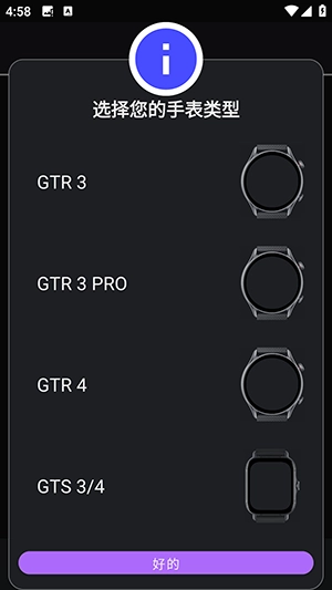 1、跳过引导页,选择手表的型号。