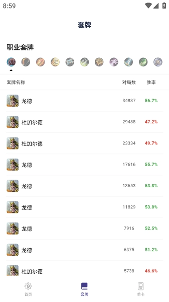 职业胜率查询:可随时获取各职业的最新胜率信息,助您洞悉当下游戏环境,以便挑选最具优势的职业投入对战。
