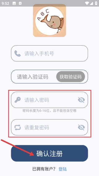 3、设置密码(6-16位),完成注册即可登录。