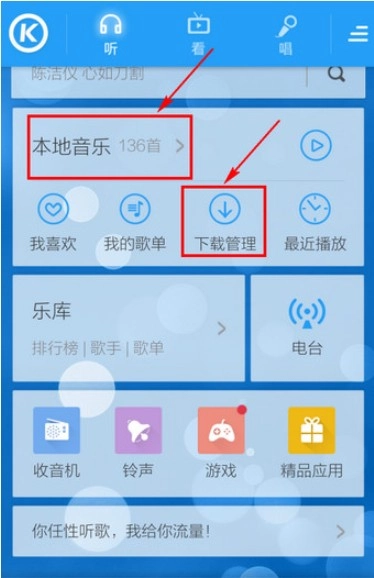 1、在【本地音乐】或者【管理】处找到已有的歌曲