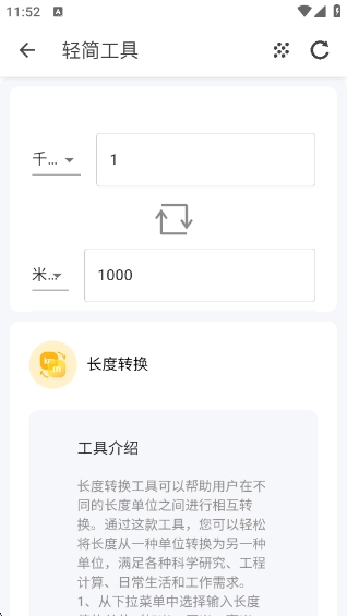 3、点击任一工具,例如“长度换算”,进入该工具页面后,输入相关数值来进行转换。