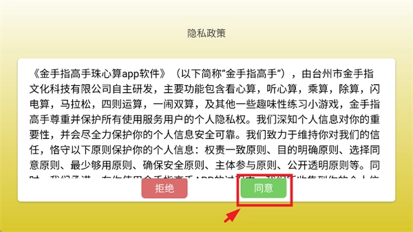 1. 打开应用,接着点击同意隐私政策与用户协议。