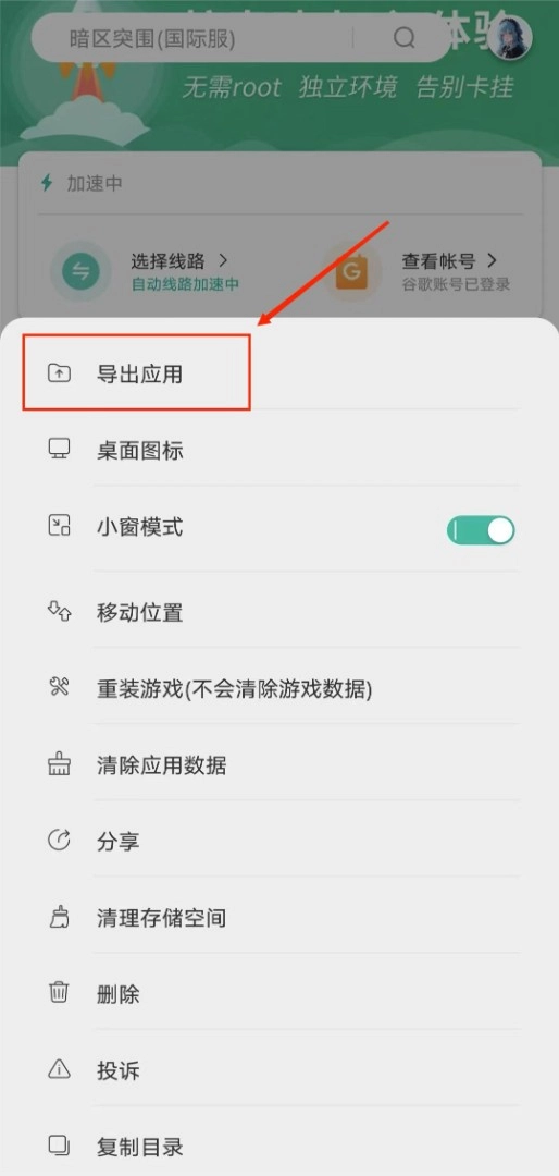 2. 开通VIP后,长按想要导出的游戏或应用,随后选择导出选项即可。
